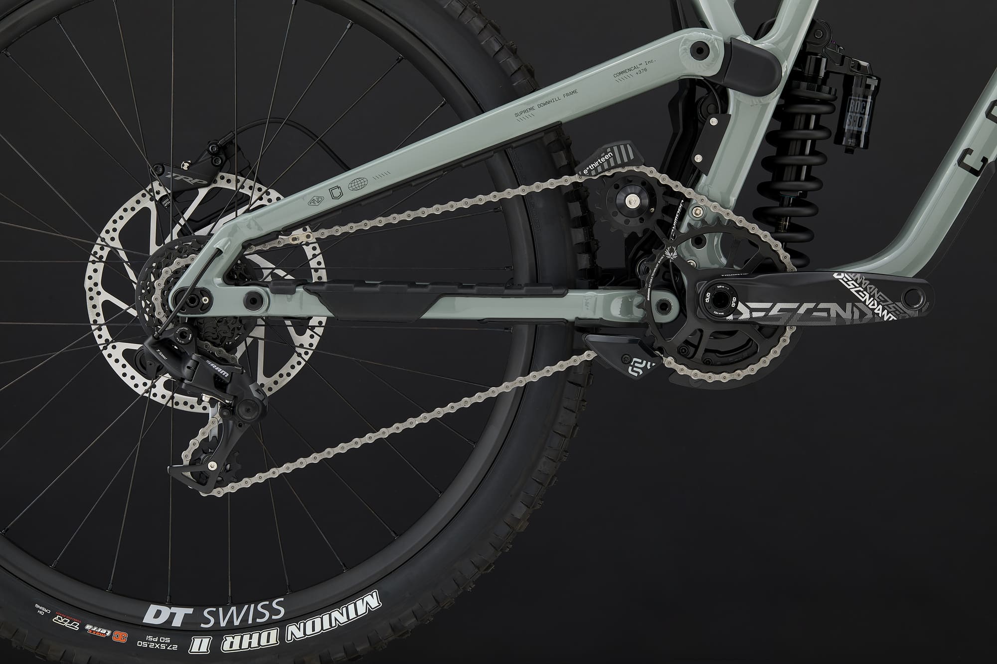 The SUPREME DH V5 RIDE is equipped with high-performance SRAM components.